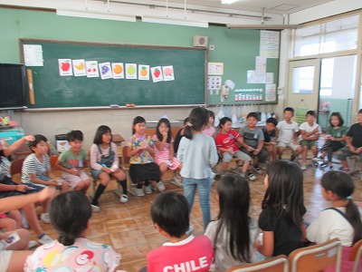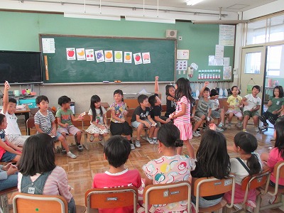 「Aer you ready?」から始まり,果物の名前を言い,フルーツバスケットを楽しみました。