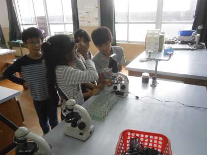 顕微鏡を使って観察しました。