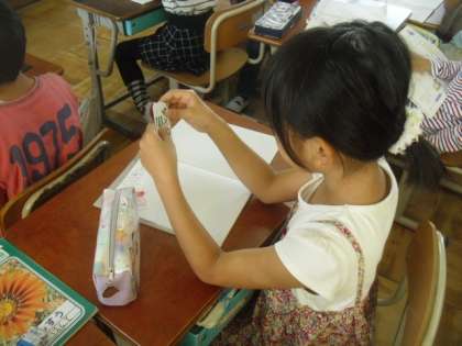 九九カードを使って,5のだんの学習をしました。早く覚えられるよう頑張りましょう。