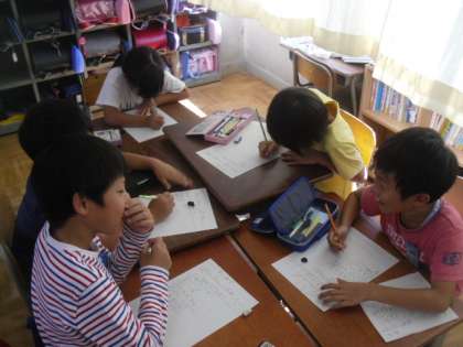 ガラクタフクブクロに集まった,ガラクタを使って,どのようなゲームができるかグループで話し合いをしました。
