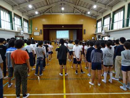 10月の全校合唱は「この星に生まれて」です。音楽委員会の児童の司会進行により,合唱しました。