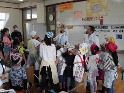 今日は,おやじの会のみなさん主催で『おいしいしょう油講座』と題し,日本料理に欠かせない調味料「しょう油」について学ぶ機会を設けて頂きました。