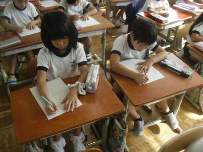 板橋タイムでは,「お手本を書き写す」学習をしました。鉛筆の持ち方や正しい姿勢を基本に,文字のバランスに気を付けて書いている姿がありました。