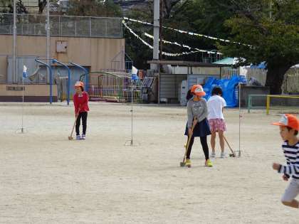土曜学習終了後,地域の方のご指導のもとグラウンドゴルフを楽しみました。