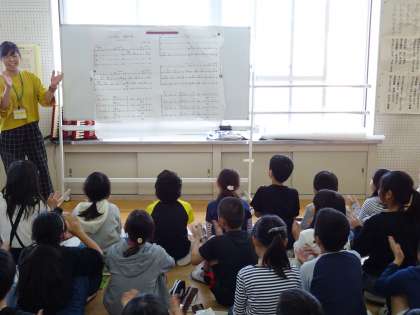 ボディパーカッションをしました。言葉をつけてリズム遊びを楽しみました。