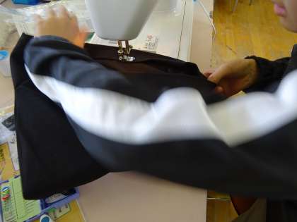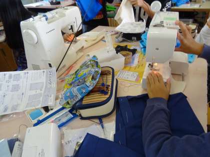 マイバッグをつくっています。ミシンを正しく丁寧に扱いました。