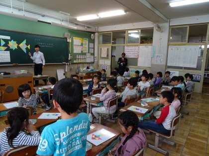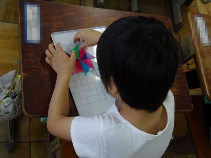 色板を使って,かたちづくりをしました。三角形や四角形を使って,色々な形をつくりました。