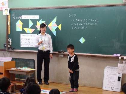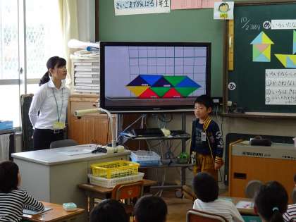 自分が作ったかたちを友達と伝え合い,全体で交流しました。