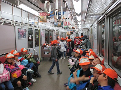 前日の雨で地面が少しぬかるんでいましたが,よい気候で無事活動することができました。朝,子供たちは楽しい気持ちを胸にいきいきと出発しました。電車の中ではマナーを守って静かに乗車しました。