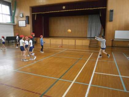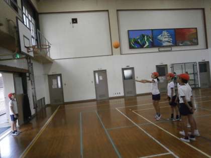 5年生は体育科でバスケットボールをしています。
