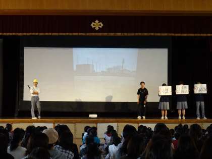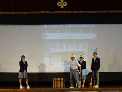 先輩方の寸劇を通して,中学校の生活について考えました。クイズもあり,とても分かりやすかったです。