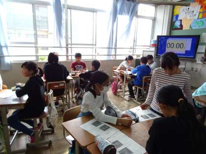 1組は数学の学習でした。辺を動かして,指定された数の正方形をつくったり,式を成立させたりしました。