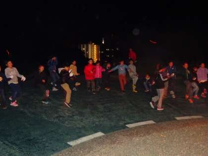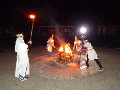 聖なる火に照らされて,出し物を楽しみました。