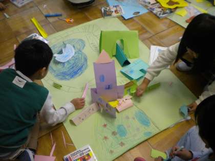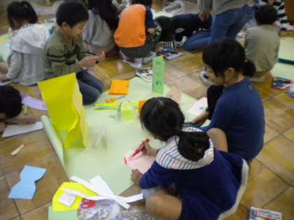 おってたてたらどんな形がみえるかな?おもいおもいのものを作りました。