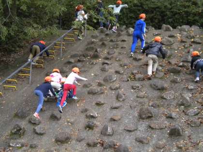 帰る前には,北堀公園へ寄って遊びました。長い滑り台にみんな大興奮です。