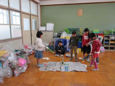 さあ,「あそび大会」が始まりました。楽しく各グループを回っています。