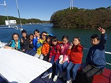 賢島港へ出発です。海風を受けて,船は快調に進みました。
