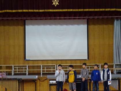 児童会・運営委員会の児童からみんなが気持ちよく学校生活を送るための約束について,話がありました。