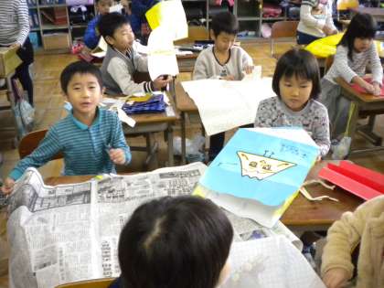 包装紙や紙袋などを思い思いにやぶり,いろいろんものをつくりました。