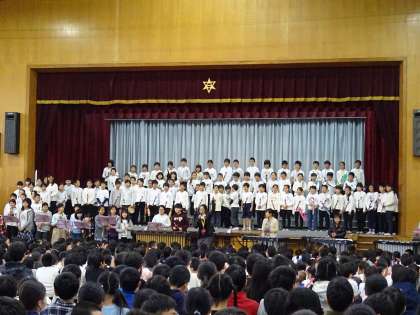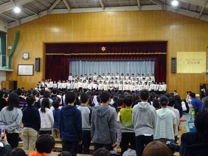 学習発表会の幕が開けました。まずは,全校合唱からです。