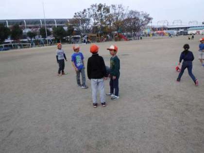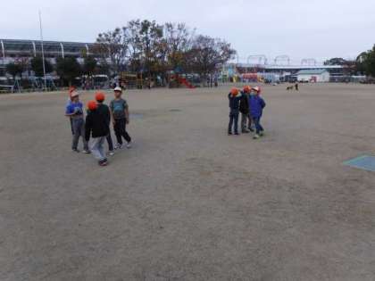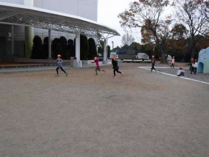 京都競馬場の緑の広場で昼食を食べた後,遊具やおにごっこで遊びました。