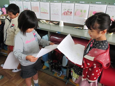 交流の中で友達からアドバイスをもらい,より良い作品になってきました。
