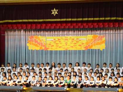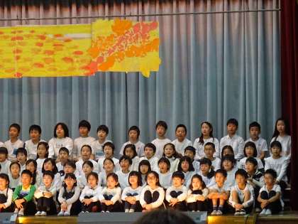 3年生の「三年とうげ」です。100人以上の迫力ある発表でした。