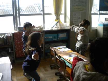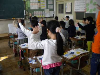 はるなつあきふゆの歌をうたいました。歌詞の意味を考えて,動作をつけながらうたいました。