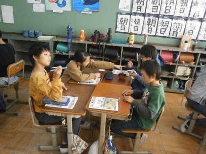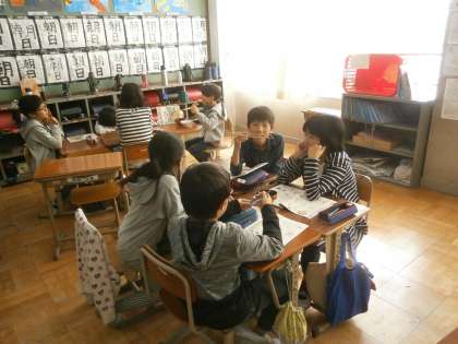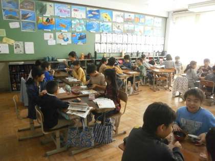 5年生は家庭科で正しいはしの持ち方を確認しました。