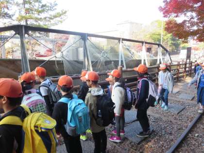ねじりまんぽを通った後は,インクラインを上がっていきました。線路の長さや船の大きさに驚く声があがっていました。