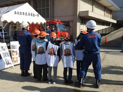 伏見板橋小にも,ジュニア消防団のメンバーがいます。