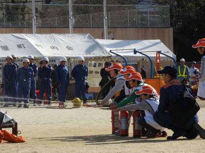 今日は,初期消火の訓練を消防分団の方々と共にがんばってくれました。