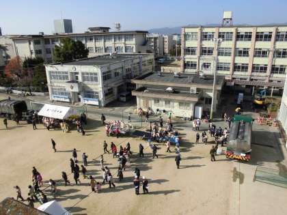 各町内での集合・避難から始まりました。伏見板橋学区の各種団体も協力し,幼稚園・小学校・中学校の子ども達も参加しての訓練でした。