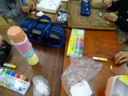 材料の組み合わせや粘土のつけ方などを工夫し,自分の思いにあったものをつくっています。