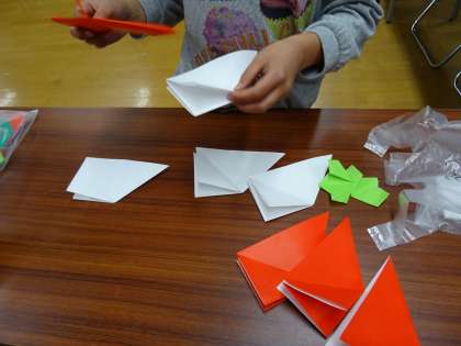 放課後まなび教室では,お正月の飾りをつくっています。色鮮やかな飾りができるようです。