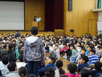 平成30年度の伏見地域生徒指導連絡協議会に掲載された人権標語の紹介が行われました。あいさつや友達の大切さがよく分かる作品でした。