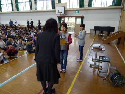 続いて,サイエンスコンテストや計量図画で優秀な成績を収めた児童の表彰が行われました。