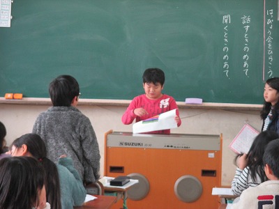 「あったらいいな,こんなもの」で,こんな便利な道具があればいいなと思うものを考え,発表しました。道具を考えた理由,働き,形や色など、聞き手にわかりやすい発表になるように考えて,発表しました。話し手は発表後「質問や感想はありませんか?」と聞き手に話しかけました。