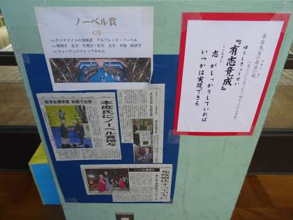 ノーベル賞受賞者の言葉「有志竟成」について,昇降口に掲示しています。