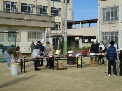 地域やPTAのたくさんの方が,朝早くから準備してくださいっています。