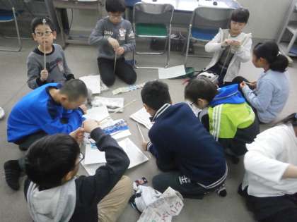 5年生は地域の女性会の方にご協力いただき,はたきづくり体験をしました。