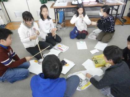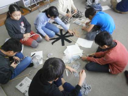 まずは木の棒に穴をあけ,そこに針金を通します。