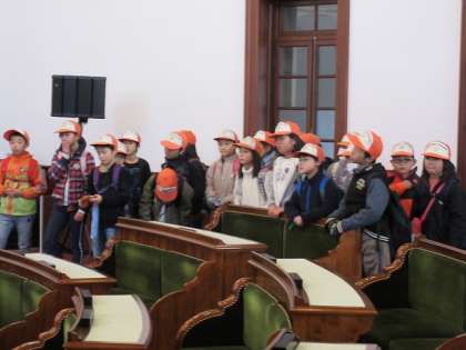 ここは,明治38年から昭和44年までの間,実際に京都府議会が開催された場所でもあります。6年生の社会科「政治」単元の学習内容ですが,貴重な機会なので見学させてもらいました。