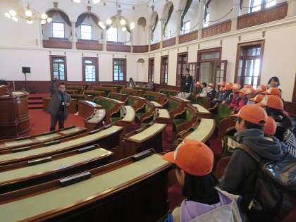 午後からの警察広報センター見学前に京都府庁内にある旧議場の見学を行いました。