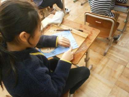 4年生では線をほっていきましたが,5年生では,線を残すようにほっていきます。