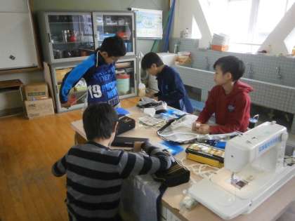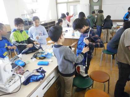 5年生は家庭科で「ミシンにトライ!」を学習しました。