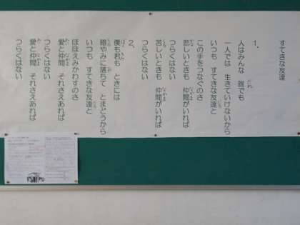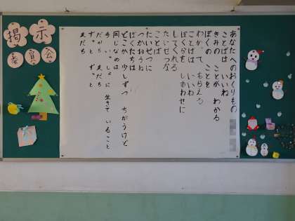12月の掲示委員会の掲示板です。人権に関係する詩が掲示してあります。