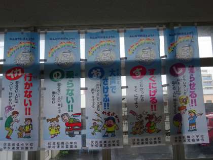 学校運営協議会の皆さんのご協力により,昇降口に「イカのおすし」についての掲示をしています。