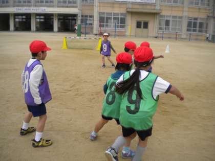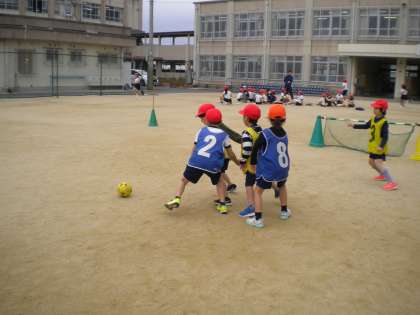 だんだんとボールを蹴るのが上手になってきています。応援の声掛けも聞こえています。
