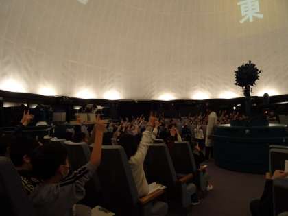 プラネタリウム学習です。ドームの中が満点の星空に早変わりしました。